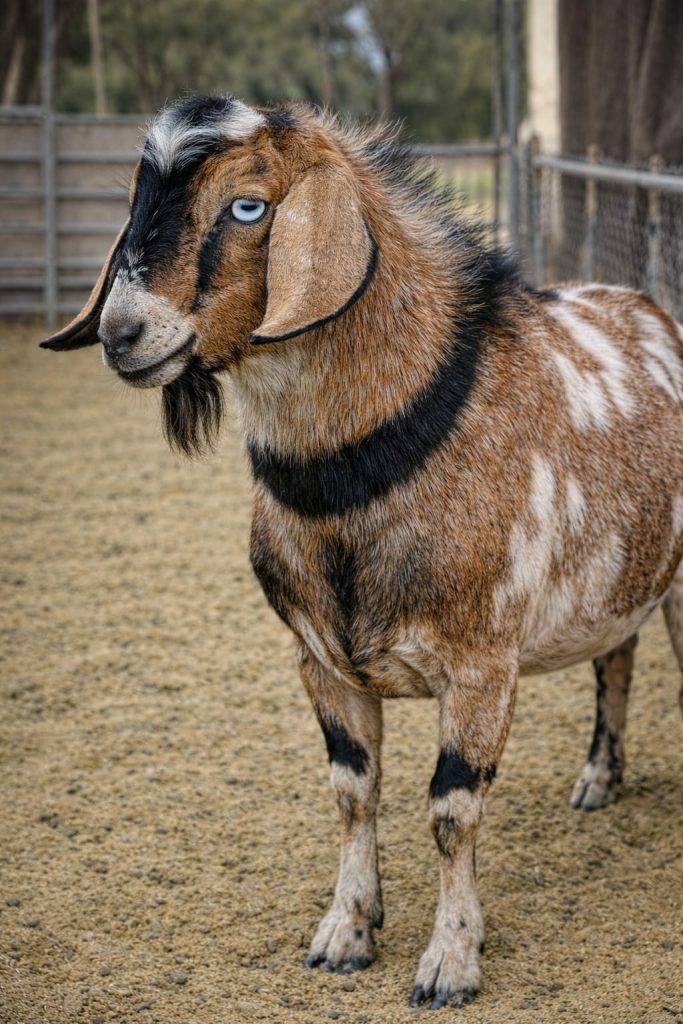 Proximo…. the father of many of the goats at Rainbow Road Farm. Proximo came to the farm as a tiny baby. He is a Mini Nubian. He was even bottle fed for a little bit by the farmers. Now all grown up, Proximo has sired an entire generation of goats at Rainbow Road. Proximo thinks he is funny. He struts around, hoping to be noticed by everyone. Proximo knows he is the head of the herd (For now), and he enjoys being a strong leader. He is friendly, and is always game for a nice head rub.