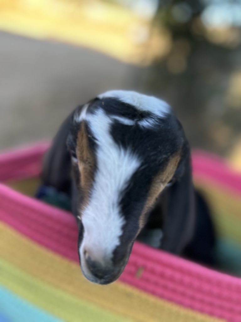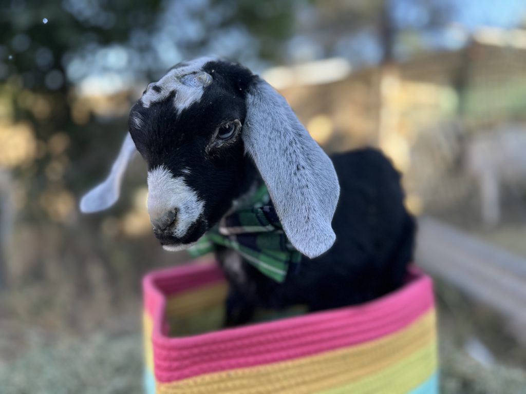 Clementine is one of the new residents at Rainbow Road Farm. A mini Nubian goat, Clementine is the daughter of the farm’s beloved Cutie. Clementine is one of two of Cutie’s new children. Clementine has taken well to Rainbow Road Farm. #Fun Fact: Cutie’s family line is named after various citrus fruits brands and types.