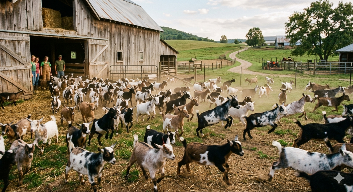 At Rainbow Road Farm, what started as “a few expected deliveries” quickly turned into a full-blown goatsplosion. Piper welcomed Mace and Stacey. Cutestyr followed with Buttercup, Dally, and Oreo. Cutie, with a little help from Farmer Tabby, brought Halo and Clementine into the world. Seven tiny lives, all within a whirlwind of straw, hooves, and barely controlled chaos.